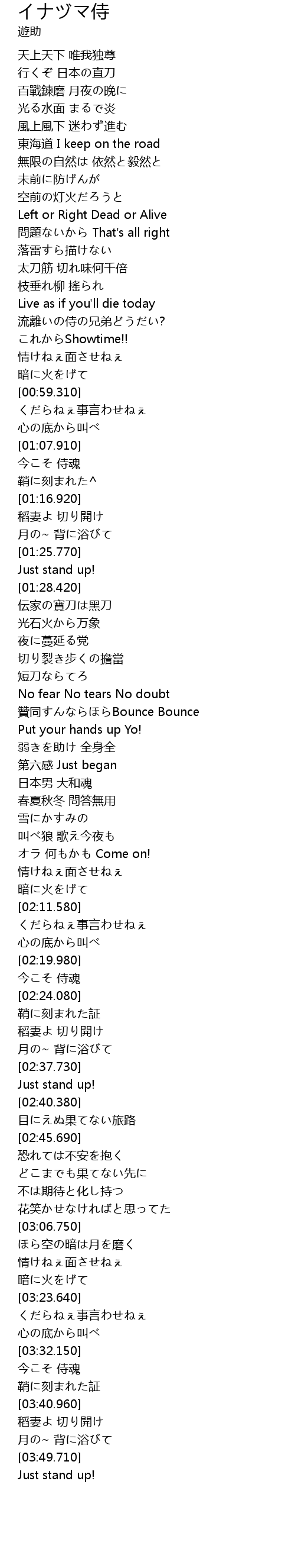 | [03:33.000] | 今こそ 侍魂 |