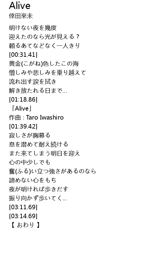 | [01:22.42] | 「Alive」 |