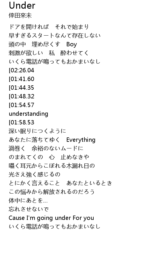 | [01:07.50][01:58.53][02:49.62][03:10.02] | under |