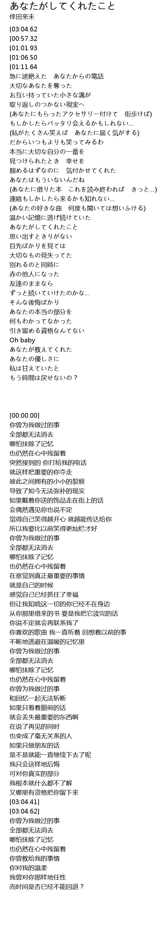 | [00:06.48][01:01.93][01:57.24][03:11.10] | すべて 消すことできない |