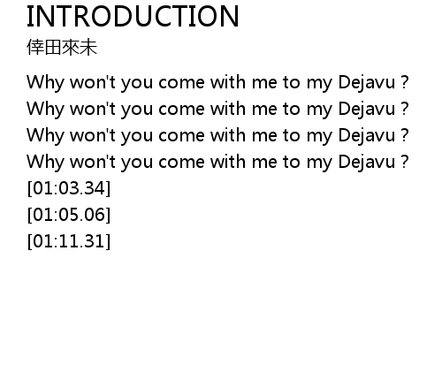 | [00:47.09] | Why won't you come with me to my Dejavu? |