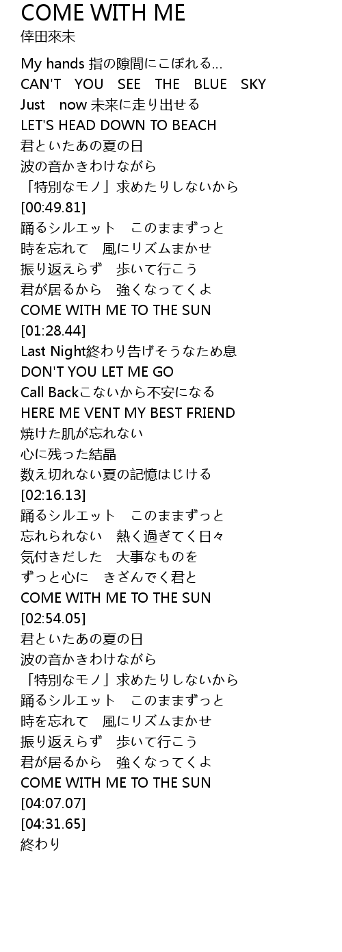 | [02:47.20] | COME WITH ME TO THE SUN |