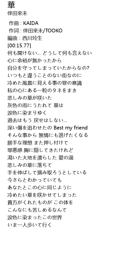 | [00:01.00] | 作词 : 倖田來未/TOOKO |