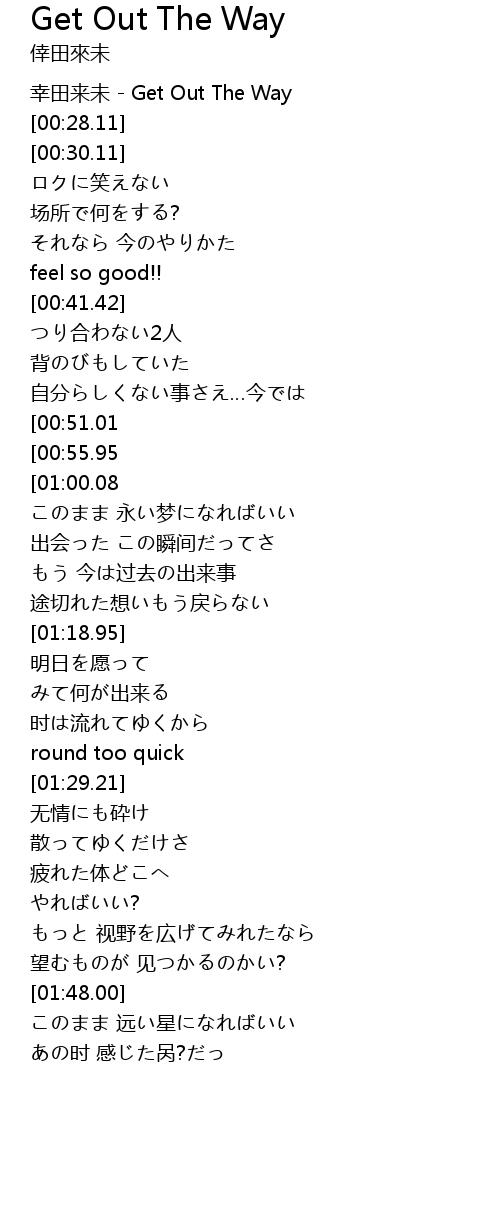 | [00:00.00] | 幸田来未 - Get Out The Way |