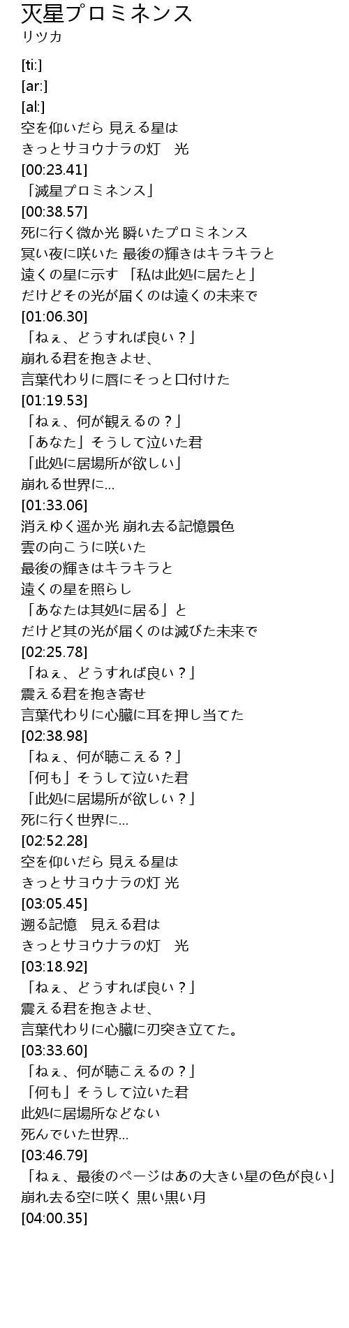 | [00:39.98] | 死に行く微か光 瞬いたプロミネンス |