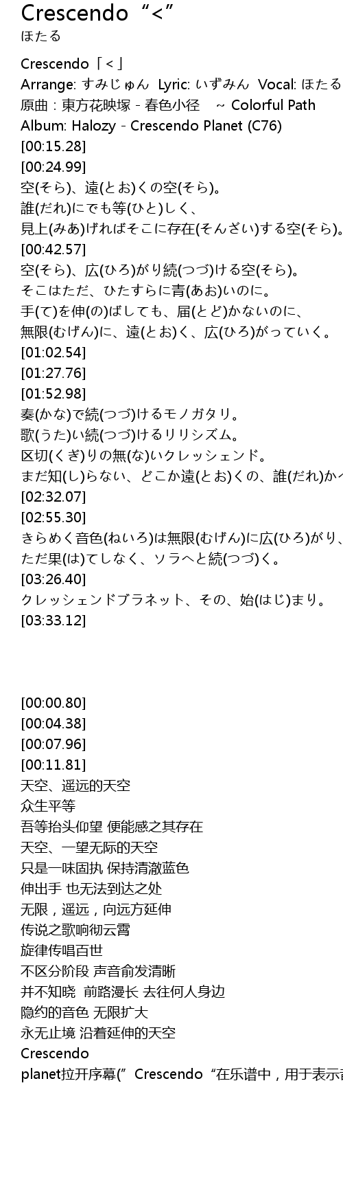 | [00:11.81] | Album: Halozy Crescendo Planet C76 |