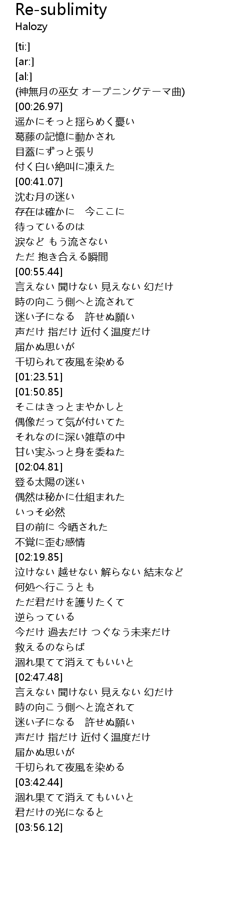 | [00:00.13] | (神無月の巫女 オープニングテーマ曲) |