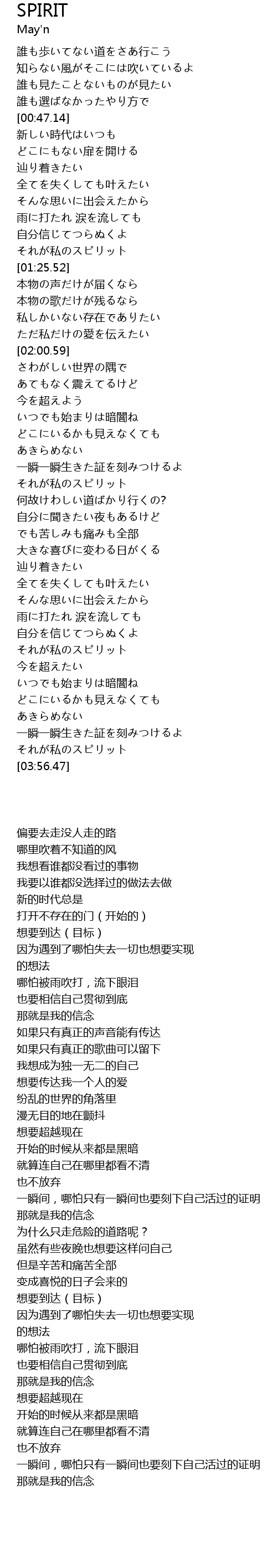 | [03:24.43] | それが私のスピリット |