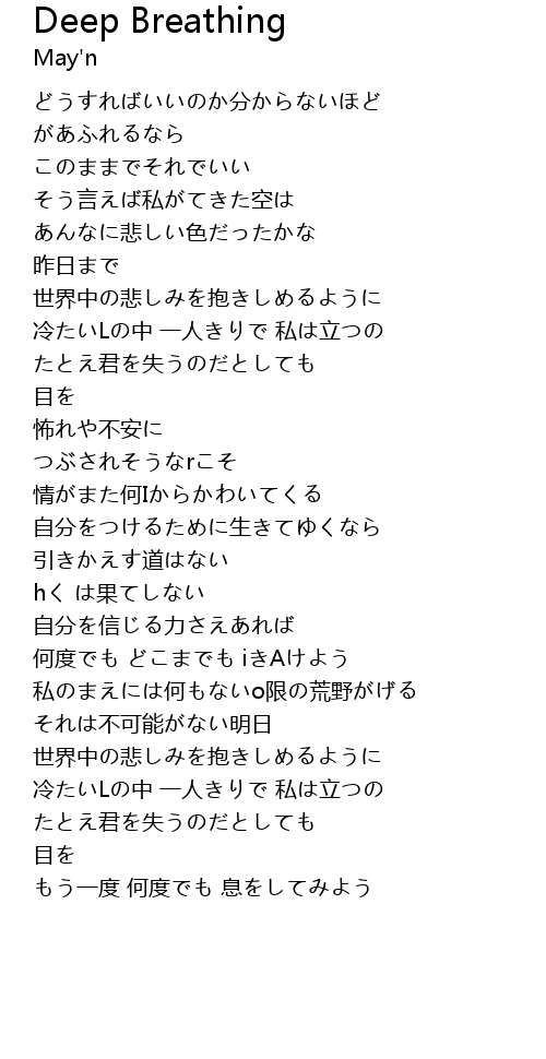 | [05:02.06]目を] | じて 胸深く 息をしてみよう |