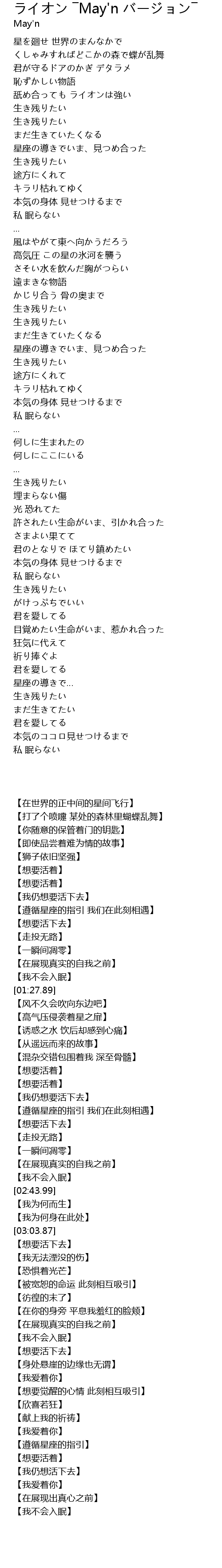 | 歌曲 | ライオン ―May'n バージョン― |