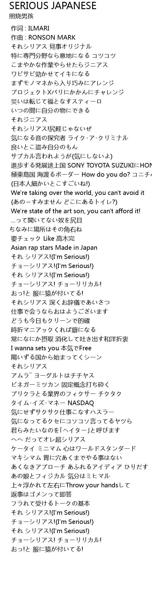 | 歌曲 | SERIOUS JAPANESE |