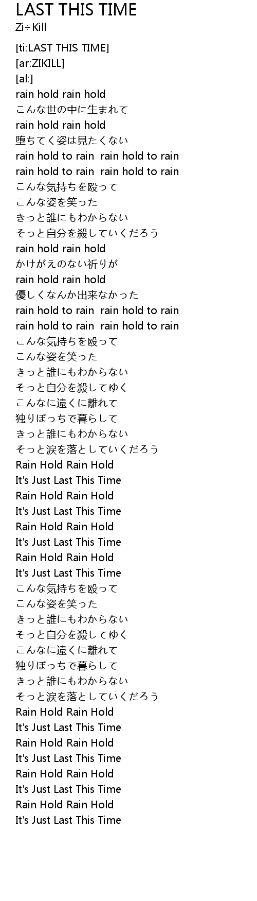 | [03:52.31] | Rain Hold Rain Hold |