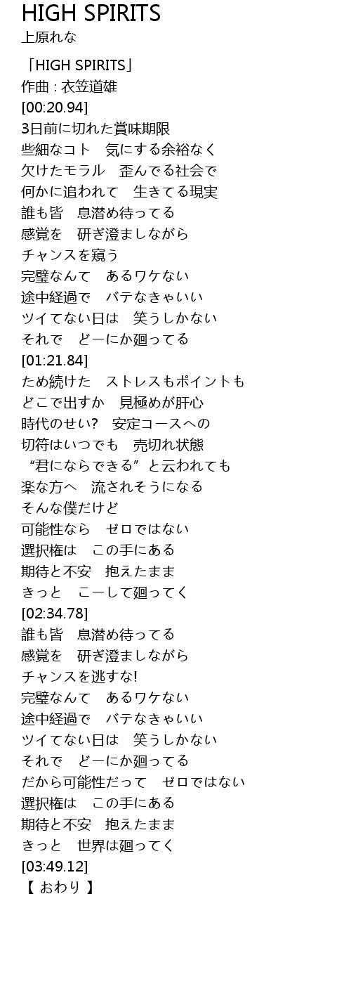 | [00:01.94] | 「HIGH SPIRITS」 |