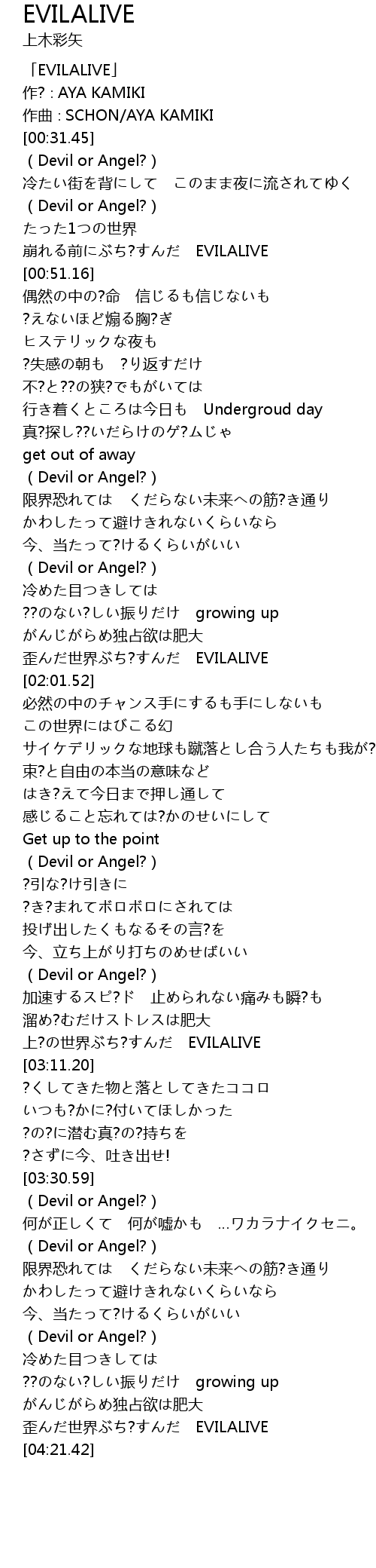| [03:03.61] | 上?の世界ぶち?すんだ EVILALIVE |