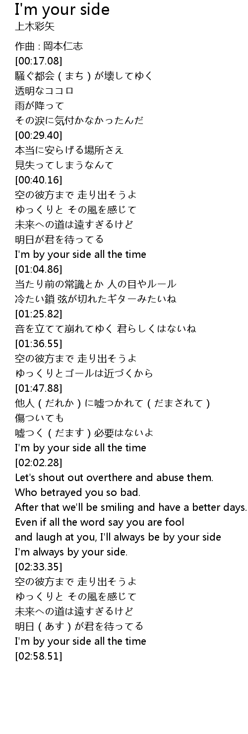 | [02:24.89] | and laugh at you, I' ll always be by your side |