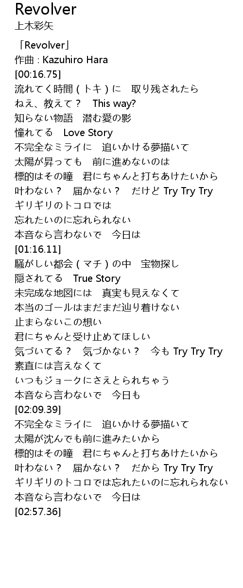 | [01:53.23] | 気づいてる? 気づかない? 今も Try Try Try |