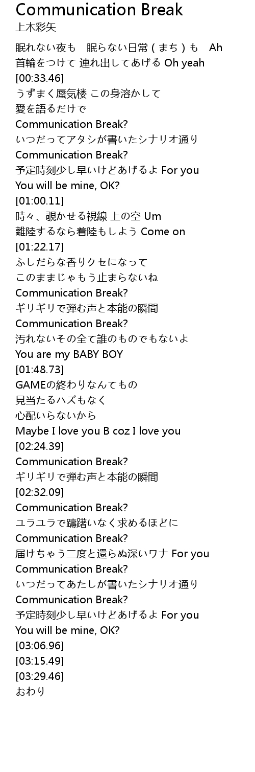 | [00:43.75] | いつだってアタシが書いたシナリオ通り |