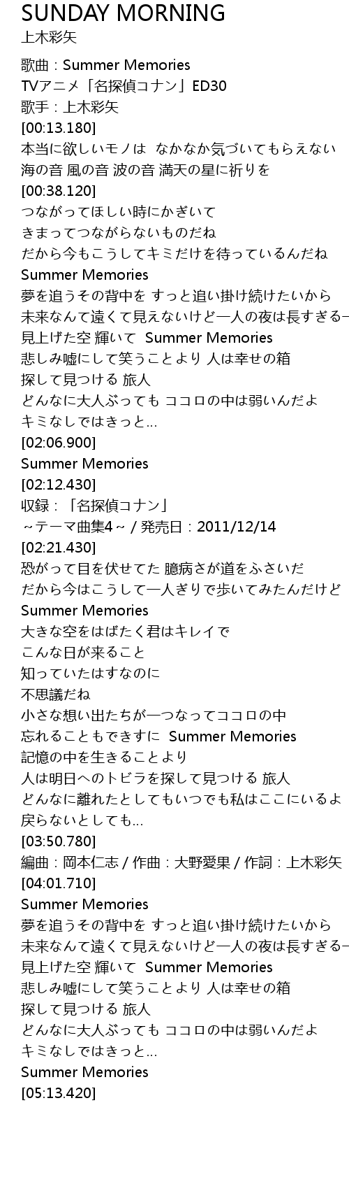 | [03:11.720] | 忘れることもできすに Summer Memories |