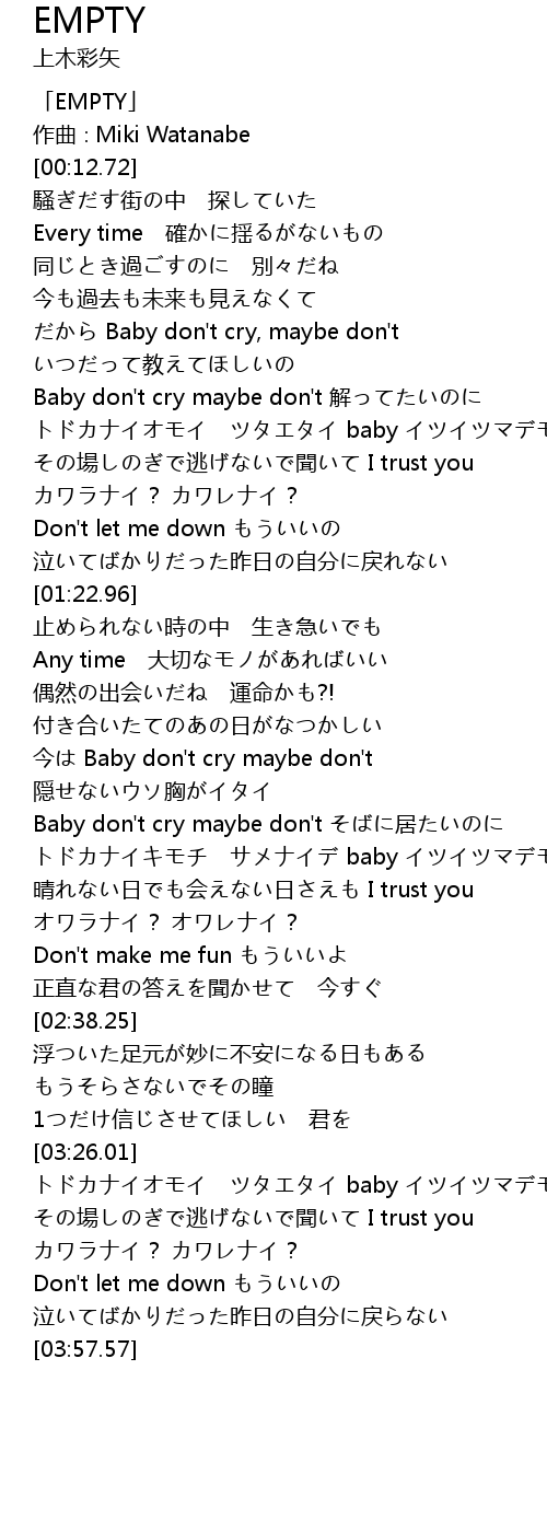 | [02:01.45] | Baby don't cry maybe don't そばに居たいのに |