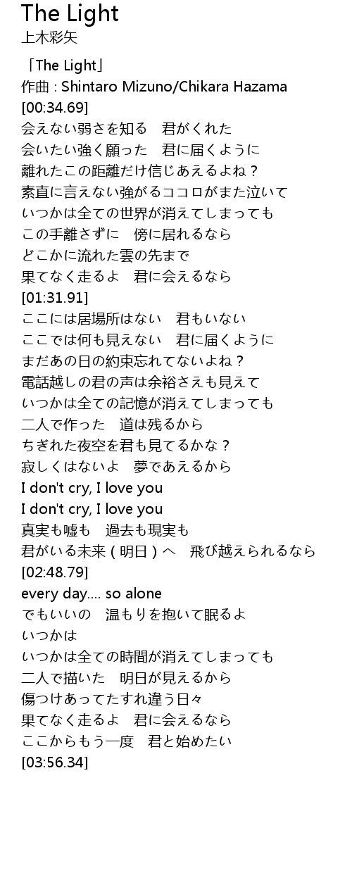 | [00:49.95] | 離れたこの距離だけ信じあえるよね? |