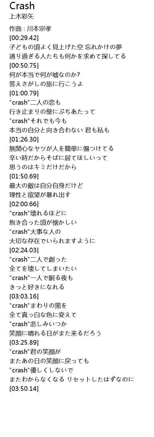 | [01:01.17] | "crash"二人の恋も |