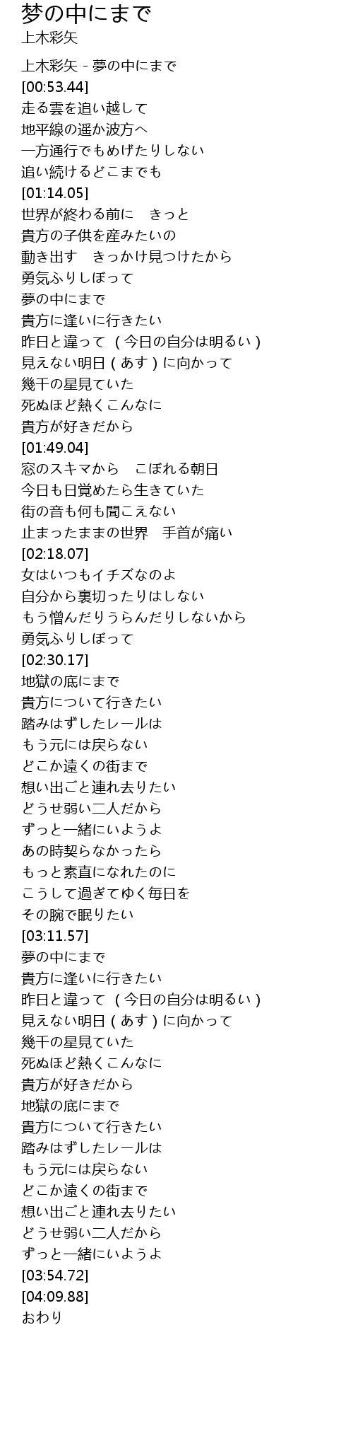 | [00:00.00] | 上木彩矢 - 夢の中にまで |
