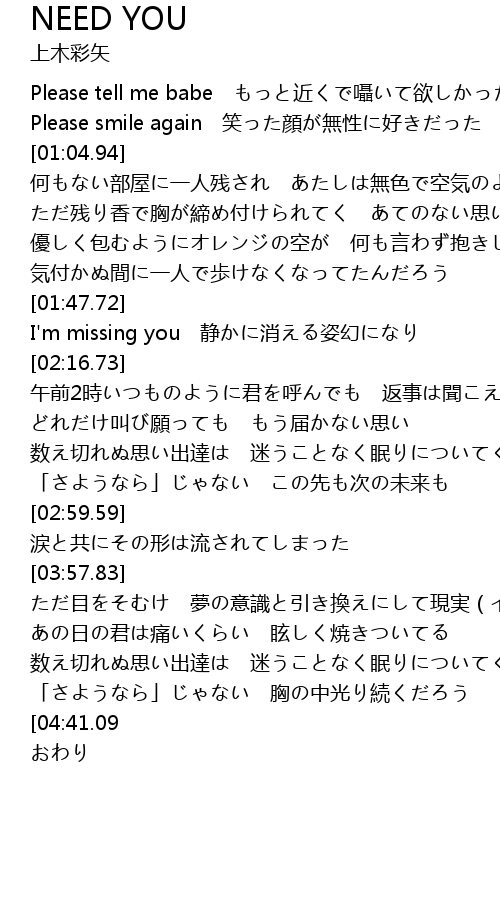 | [01:57.54] | I'm missing you 静かに消える姿幻になり |