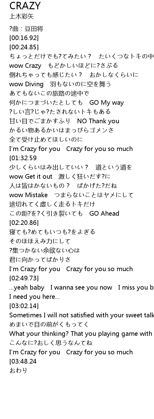 | [00:33.04] | wow Crazy もどかしいほどに?さぶる |