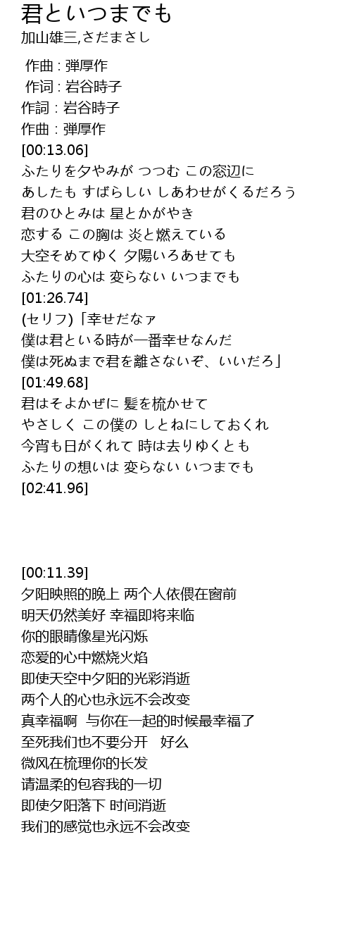 | [01:15.14] | ふたりの心は 変らない いつまでも |