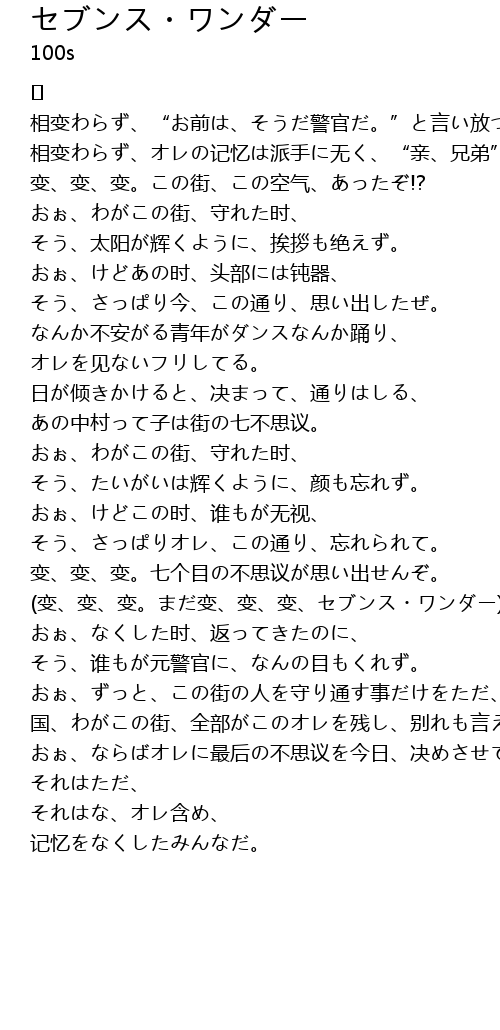 | 歌曲 | セブンス・ワンダー |