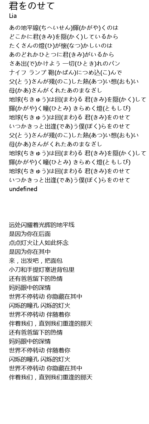 | [02:54.36] | 地球(ちきゅう)は回(まわ)る 君(きみ)をのせて |