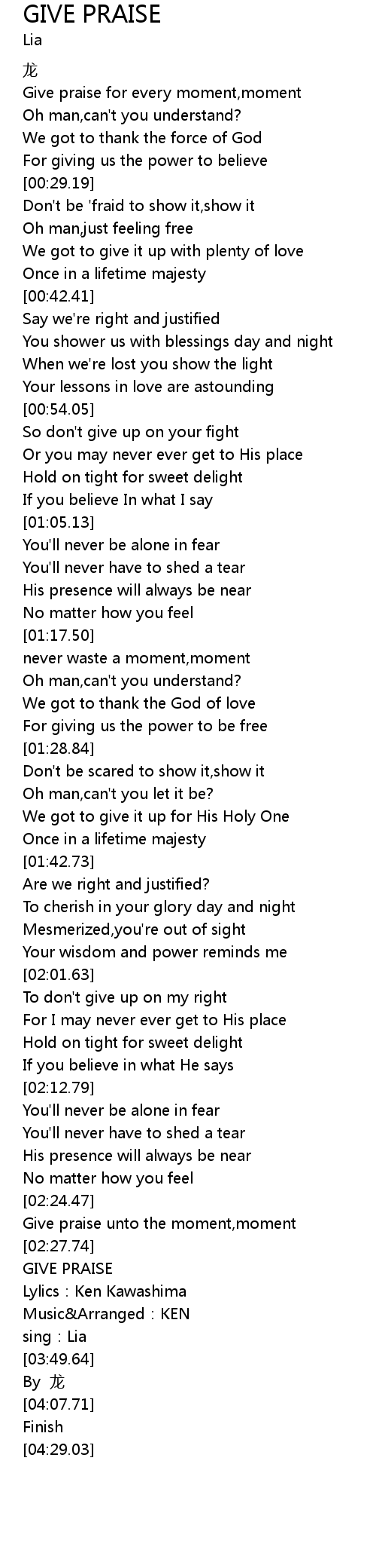 | [03:07.68] | GIVE PRAISE |