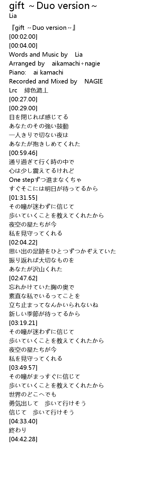 | [00:00.00] | 『gift ~Duo version~』 |