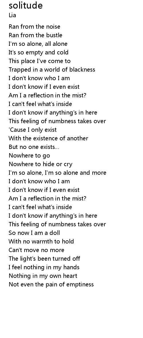| I'm so alone, I'm so alone and more | |