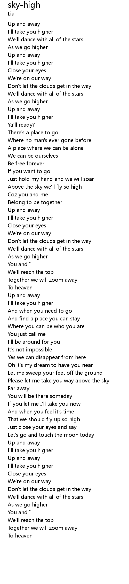 | Please let me take you way above the sky | |