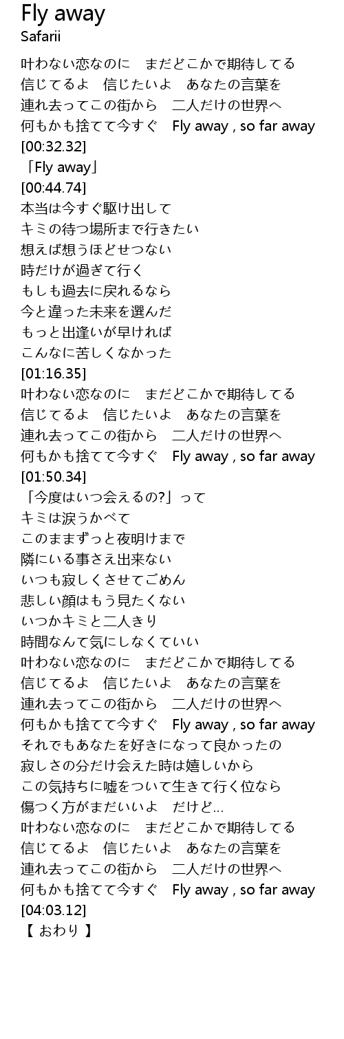 | [03:53.25] | 何もかも捨てて今すぐ Fly away , so far away |