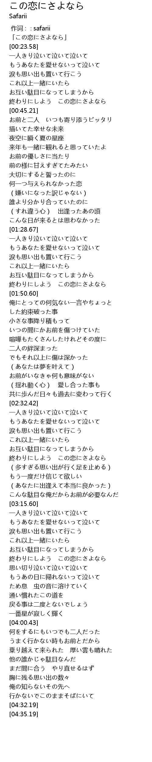 | [03:34.82] | 終わりにしよう この恋にさよなら |