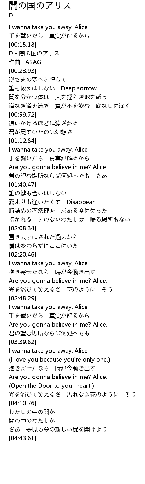 | [02:34.23] | Are you gonna believe in me? Alice. |