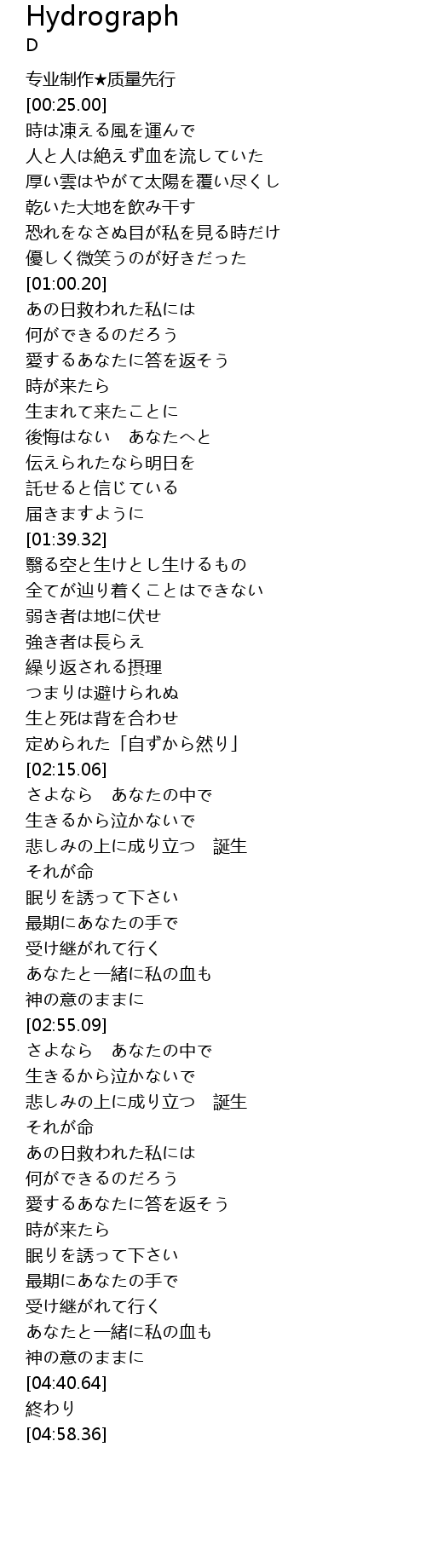 | [01:42.32] | 翳る空と生けとし生けるもの |