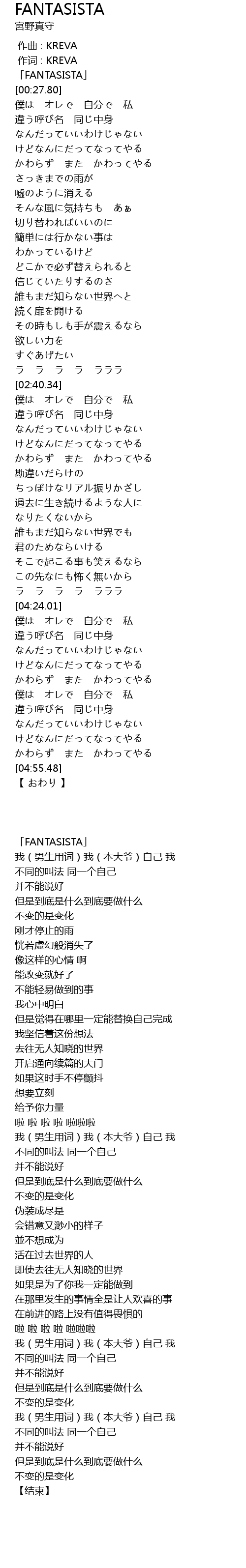 | [04:26.38] | 我(男生用词)我(本大爷)自己 我 |