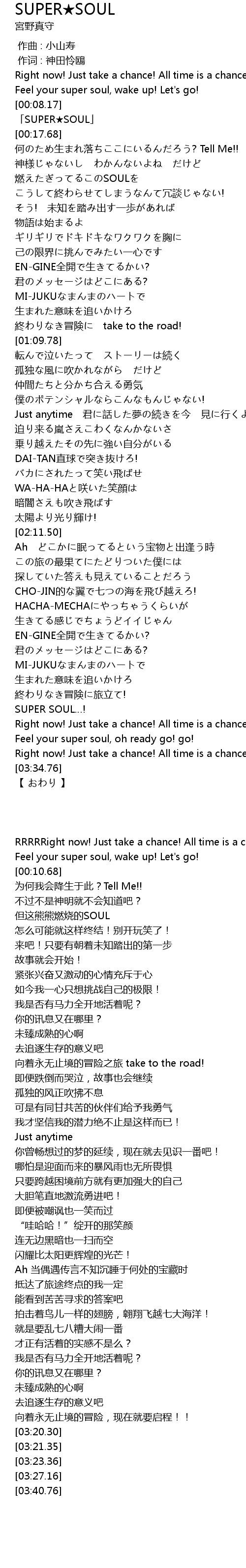 | [03:23.36] | Feel your super soul, oh ready go! go! |