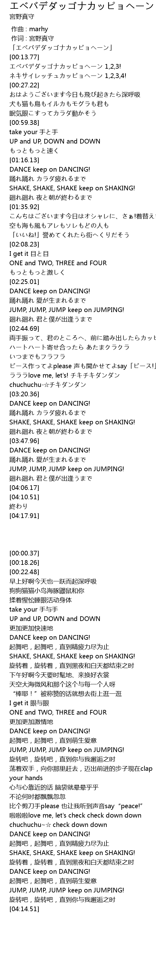 | [00:00.37] | 「エベバデダッゴナカッピョヘーン」 |