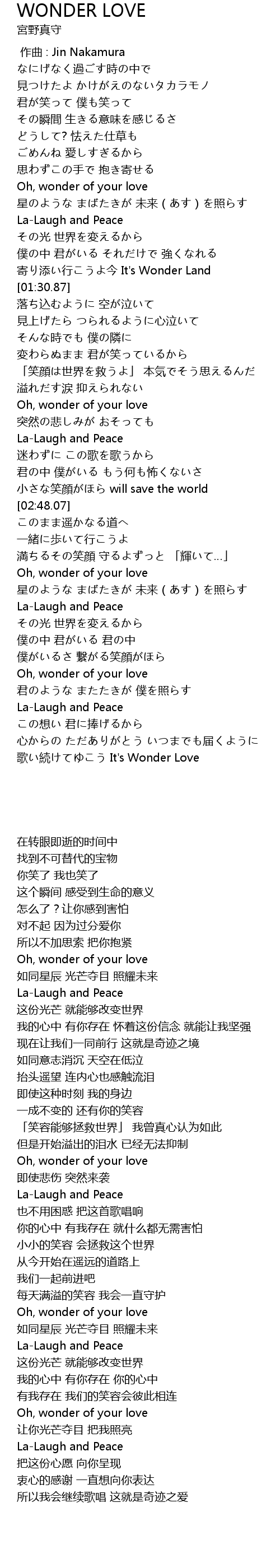| [04:09.25] | 歌い続けてゆこう It's Wonder Love |