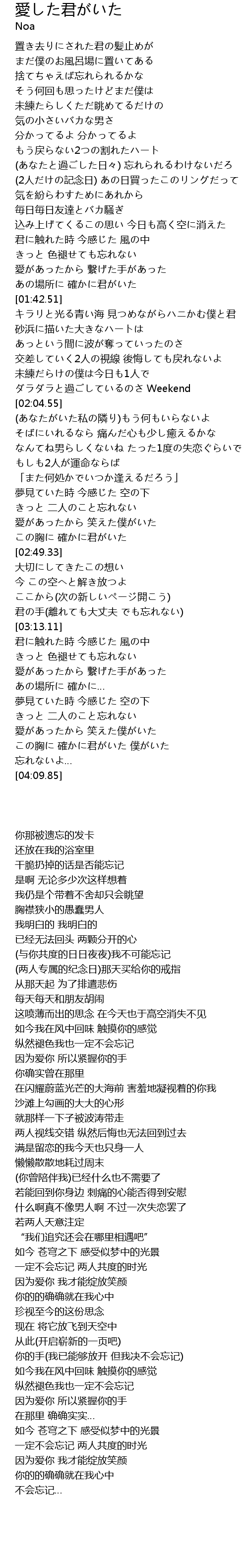 | [02:42.13] | この胸に 確かに君がいた |