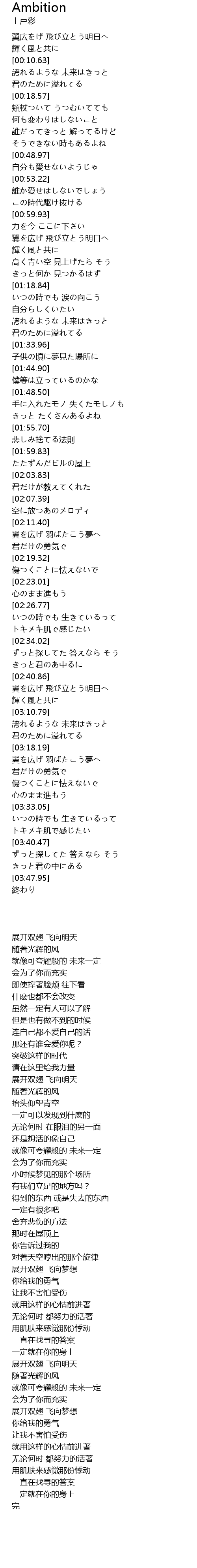 | [03:18.94] | 展开双翅 飞向梦想 |