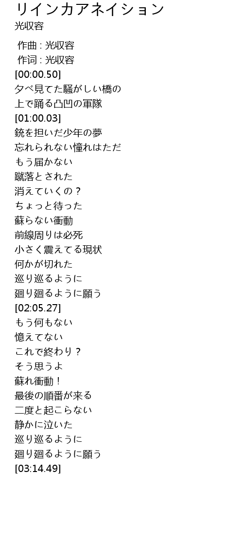 | [00:49.83] | 上で踊る凸凹の軍隊 |