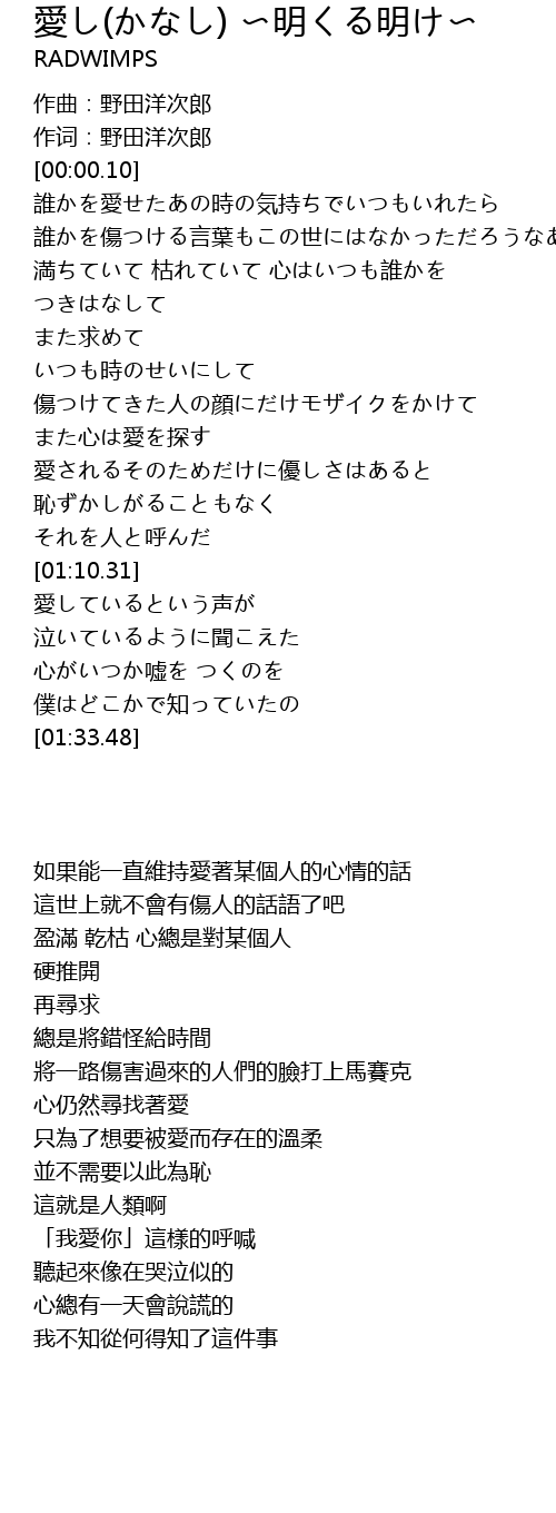 | [00:00.00] | 作曲:野田洋次郎 |