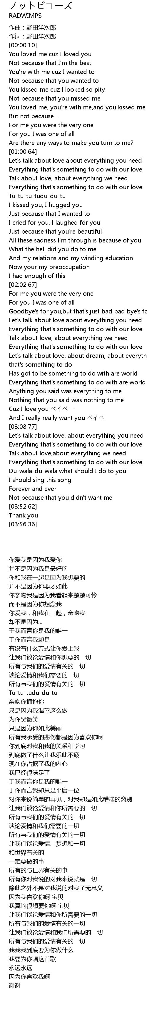 | [02:18.37] | Let's talk about love.about everything you need |