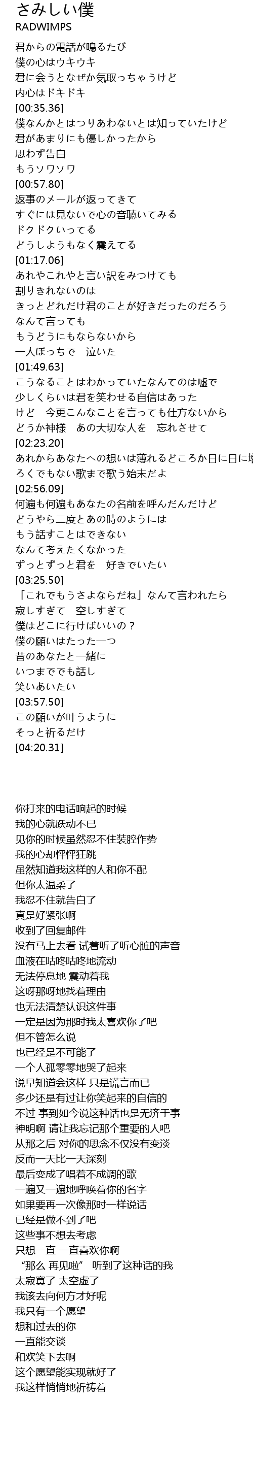 | [03:33.34] | 太寂寞了 太空虚了 |