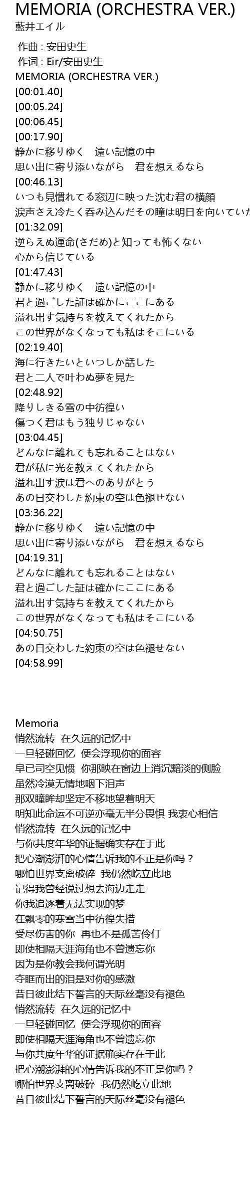 | [00:00.06] | MEMORIA ORCHESTRA VER. |